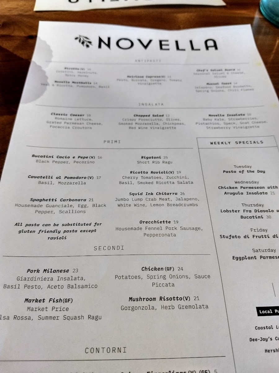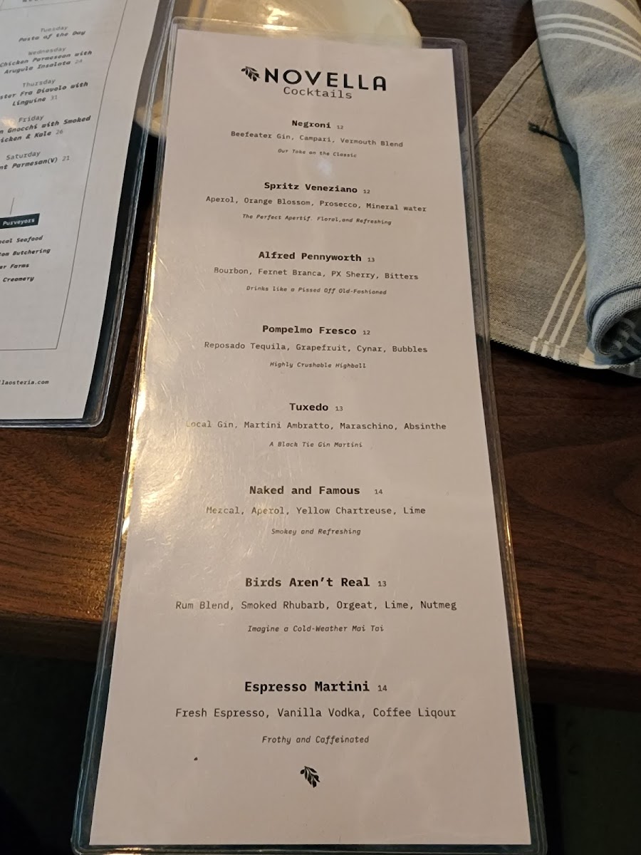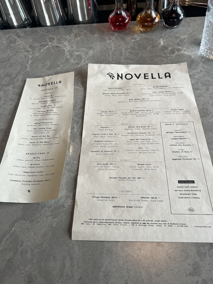 Novella Osteria Menu (2025 Update)