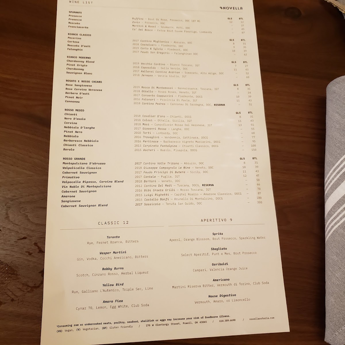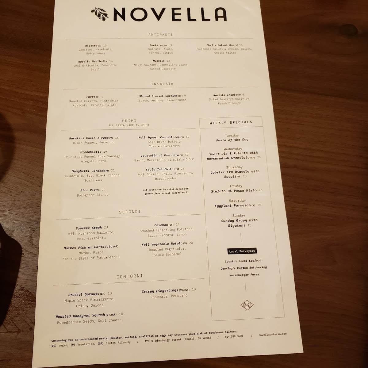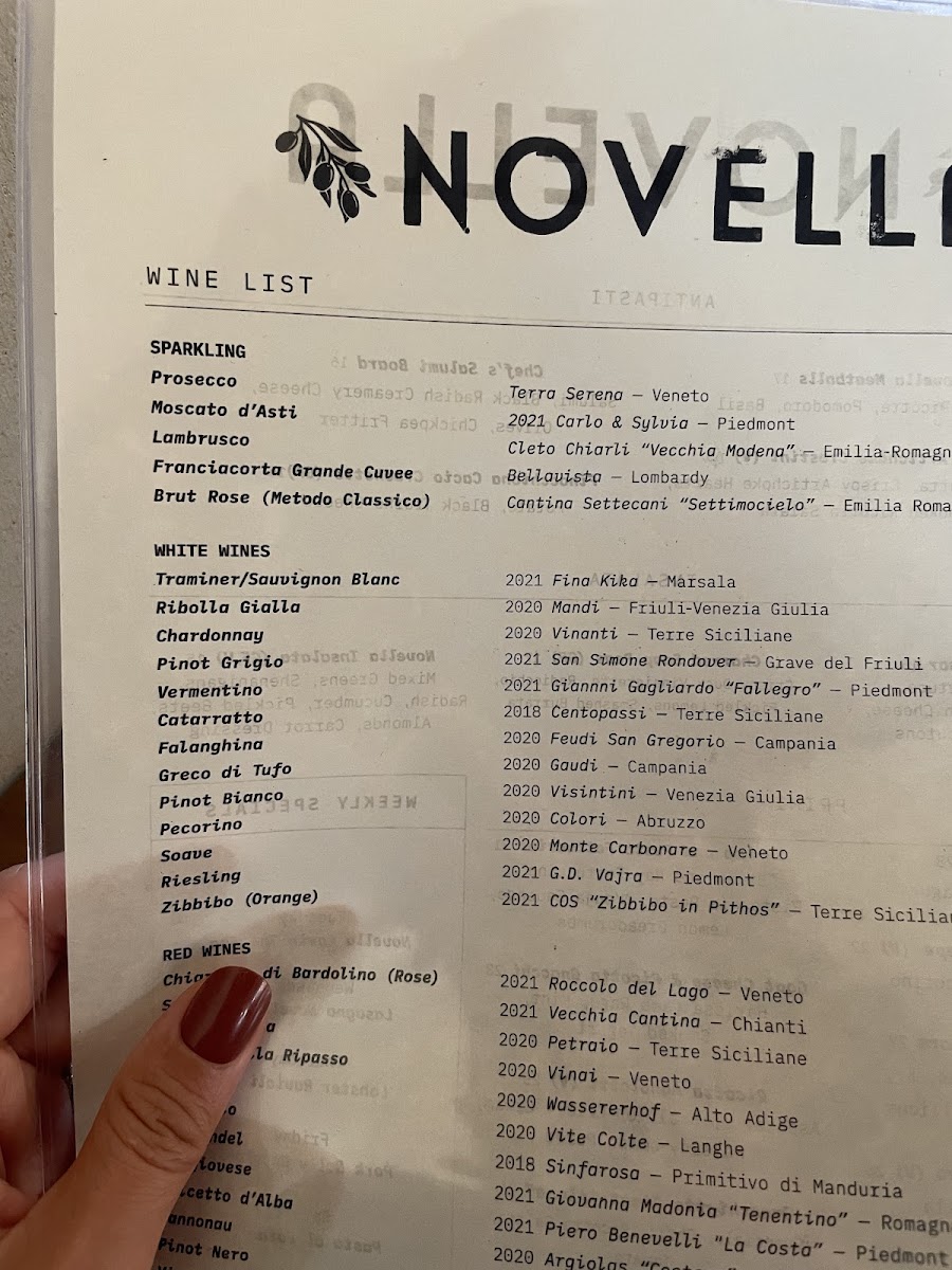 Novella Osteria Menu (2025 Update)